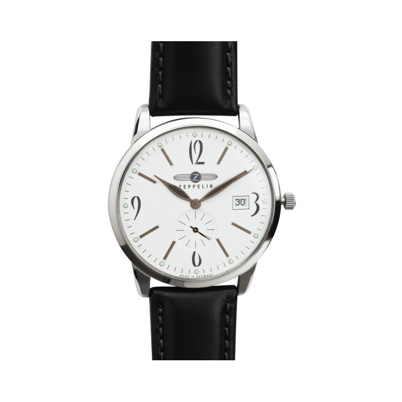 We owe this nice brand to Ferdinand von Zeppelin, a big architect which is behind the famous dirigible Transatlantic who, at the beginning of the 20th century, was joining the America. The design of the Flatline is a lot inspired from this. A white and circular dial, with a 39mm diameter, are a perfect match with the black leather wristband. The special thing of this watch is the mix between the black numbers and the black bars, giving a vintage effect. A date window is well placed at 3. The brand and her logo are located at 12, and its second-hand is eccentred at 6. This watch got a Quartz Ronda 6004.D movement. A real pleasure for the authentic design lovers.
