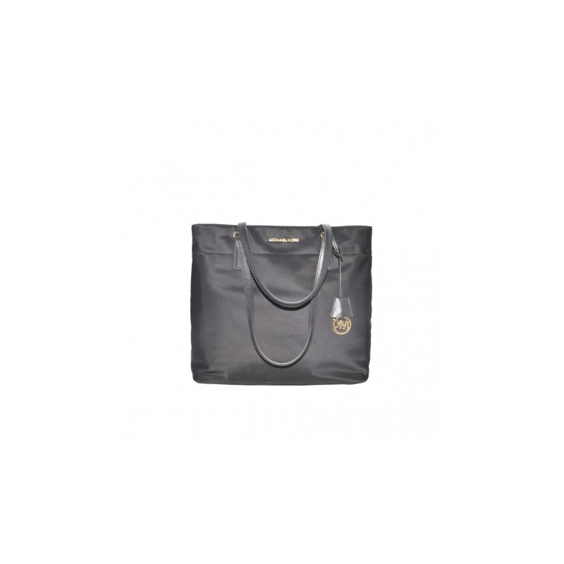 Black leather bag and gold designed and handmade by the house Michael Kors