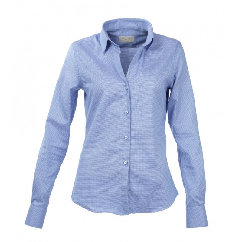 Blouse in deep neckline : 1 button has been removed . This plain shirt is timeless and adapts to any outfit. Small rigid collar. Two clamps to back. Wrist two buttons. Buttons at the neck , then after cleavage. Collar height: 3cm . Length tips : 5.5cm . Back length in size L: approximately 63cm . Length sleeves size L : approximately 62cm . Wrist Width: 6.5cm . Shirt Composition : 100% cotton two-ply warp and weft .