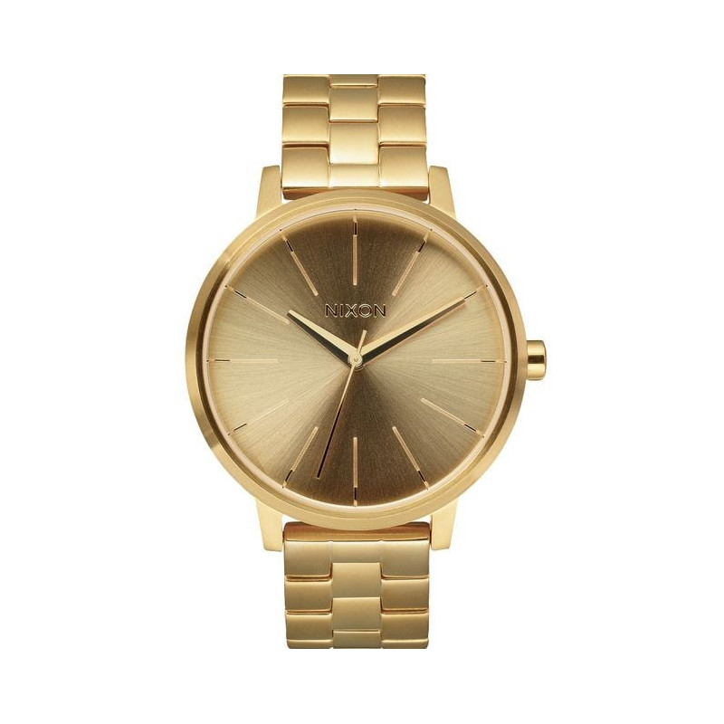 Little sister of the Mellor with her nice dial, her case and her strap made with stainless steel, all in gold. The Kensington ALL Gold is a ladie's watch by Nixon. She will please mens with little wrists and to the women in love with the brand.