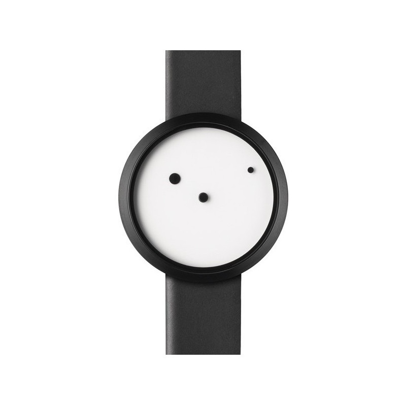 Space and minimalist, Ora Lattea is of absolute sobriety. Design Guidone , Milanese designer who has designed for Nava Design love these simple and expressive forms . How imagine a watch with simple shapes ( circles, surfaces , materials ) to obtain a very identity result is all the talent of Denis Guidone . 2 points in rotation about an axis point on a wide white dial indicate the hour and minute in a spatial atmosphere of planets rotating about an axis . Stainless steel , Ø36mm , isa 1198.101.3 movement . Mineral glass , leather strap , water resistant to 30m .