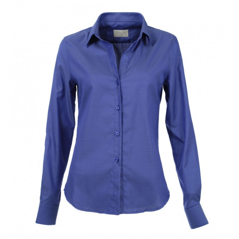 Blouse in deep neckline : 1 button has been removed . This plain shirt is timeless and adapts to any outfit. Small rigid collar. Two clamps to back. Wrist two buttons. Buttons at the neck , then after cleavage. Collar height: 3cm . Length tips : 5.5cm . Back length in size L: approximately 63cm . Length sleeves size L : approximately 62cm . Wrist Width: 6.5cm . Shirt Composition : 100% cotton two-ply warp and weft .