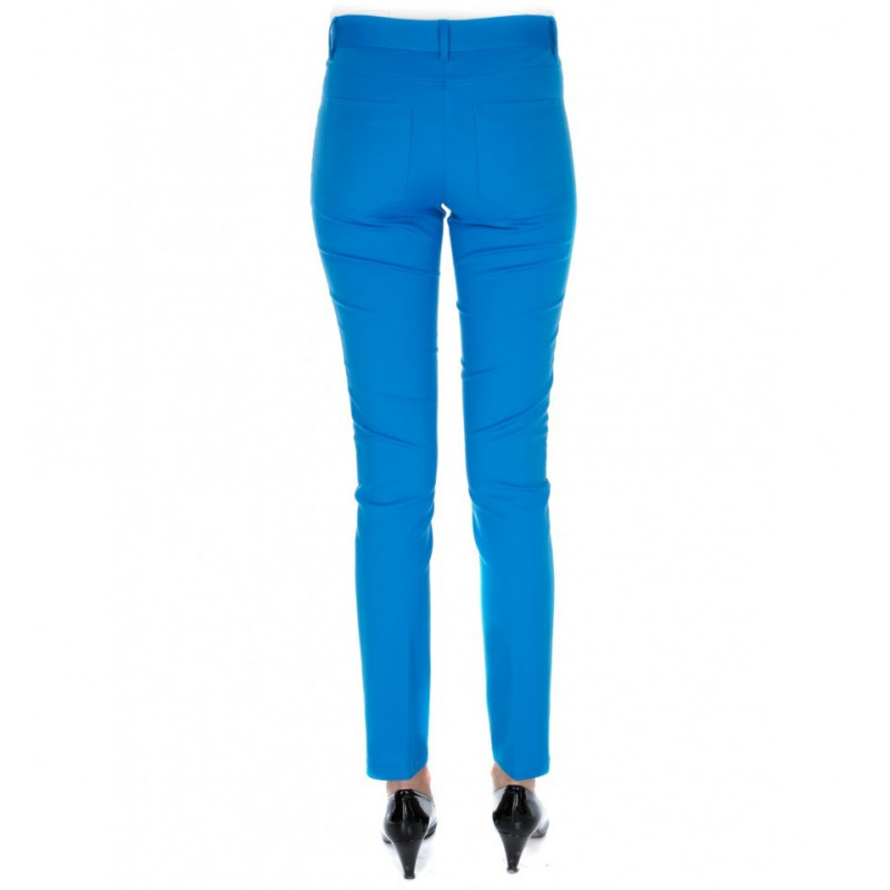 Thin and stretch pants tight on the body in sporty look with its two zipped pockets and visible stitching . Two straight zipped side pockets . Two patch pockets on the back . Zip closure, hooks and buttons. Belt loops . Inseam length size 36 : 80cm . Width size : 14cm . Trousers Composition: 61% cotton, 35 % viscose and 4% elastane .